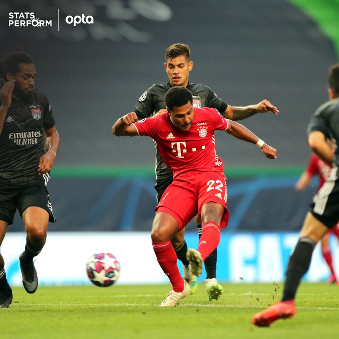 غنابري هو ثاني لاعب ألماني يسجل ثنائية في نصف نهائي دوري أبطال أوروبا ، بعد زميله الحالي توماس مولر في 2012-13 (ضد برشلونة)