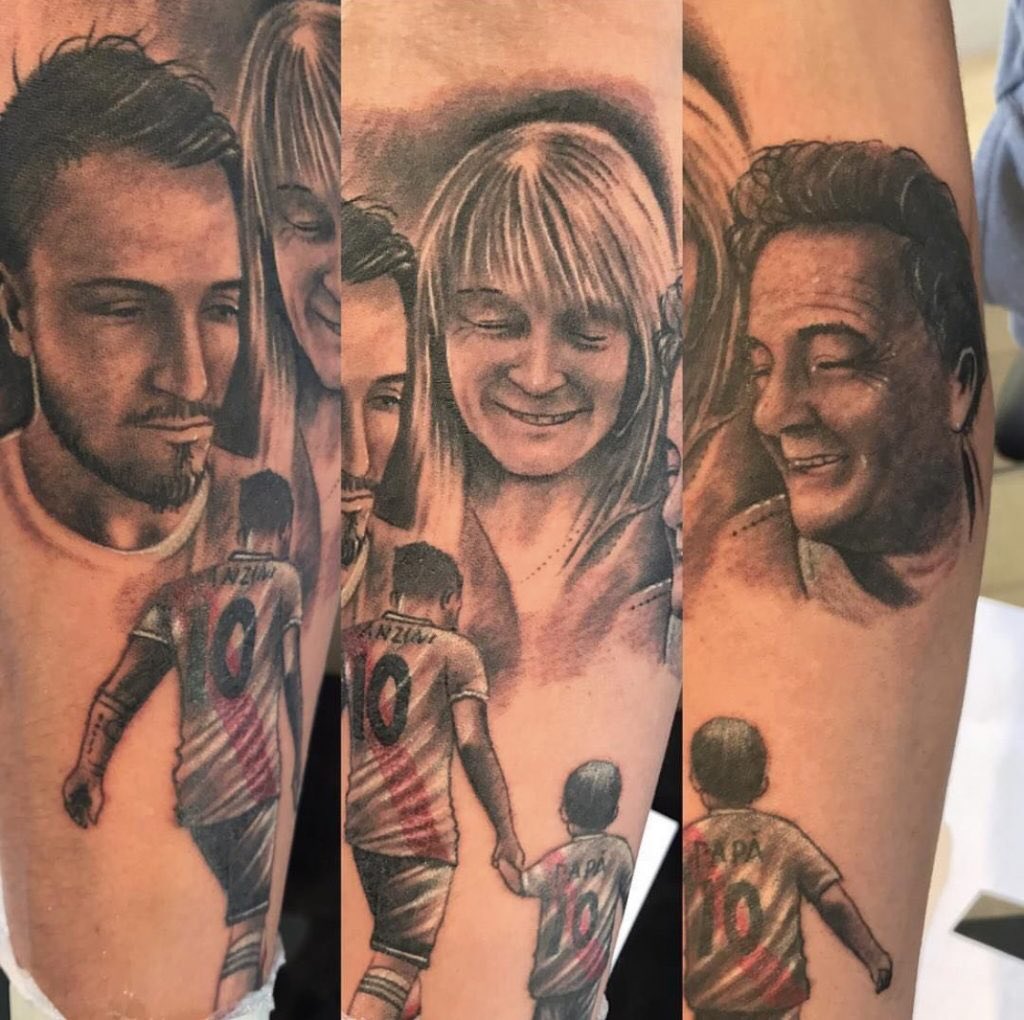 يعتبر نجم وست هام الأرجنتيني مانويل لانزيني رجل عائلي تقليدي و يتضح ذلك جلياً من خلال الوشم المُحَبَّر على جسده حيث تظهر امه ميريام و أبوه هيكتور بالإضافة لصورة له مع ابنه بينجامين مرتديان قميص ريڤر بليت النادي الذي مثَّله ١٢ سنة ببداياته ..