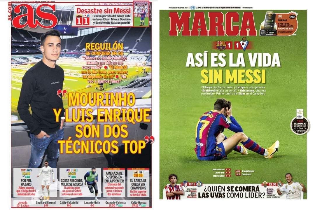 📰 أغلفة الصحف الصادرة ليوم الأربعاء 30/12/2020.🗞️ غلاف آس | أخيرًا، زيدان أعلن أنّ هازارد سيحصل على دقائق أمام إلتشي.• ريغيلون: زيدان لم يتحدّث معي عندما غادرت النّادي، وهذا الأمر لم يفاجئني.• ريغيلون: ريال مدريد أعطاني كل شيء، لكن العودة لا تعتمد عليّ.• ريغيلون: لا أرى راموس خارج مدريد. غلاف ماركا | هازارد، أسينسيو وفينيسيوس يقاتلون من أجل الدخول في التشكيلة الأساسية