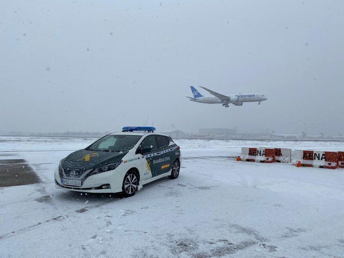 إيدو أغيري (شيرينغيتو): طائرة ريال مدريد تقف على المدرج والان يتم سكب ماء ساخن لإذابة الثلوج على أجنحة الطائرة ومن ثم ستتم إضافة مادة مانعة للتجمد ليتم المنع من إعادة التجمد مرة أخرى أثناء الإقلاع.