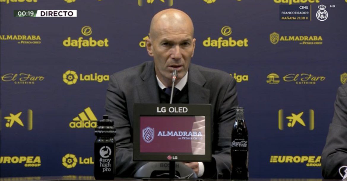 #زيــن_الــديــن_زيــدان :أنا سعيد بما يفعله كريم ، نحن نعرف اللاعب الذي نملكه. نعرف مستوى اللعب ، والأهداف ، وكيف يجعل الآخرين يلعبون ، وأنا سعيد من أجله ، ونستمتع به ، وآمل أن يستمتع به ريال مدريد لوقت أطول.#زيــن_الــديــن_زيــدان :لقد لعبنا اليوم بثلاثة لاعبين متأخرين واثنين من اللاعبين الهجوميين للغاية مثل مارسيلو وأودري وكان الأمر جيدًا بالنسبة لنا. يمكننا أن نلعب 4-3-3 ، 4-4-2 ، الشيء المهم هو الروح التي نملكها ، كيف ندافع وقد دافعنا بشكل جيد اليوم.#زيــن_الــديــن_زيــدان :هدفنا ، لقد تحدثنا عدة مرات ، إنها 9 أشهر من المنافسة ، نحن على قيد الحياة في كلتا المسابقتين ، وهما نقاط مهمة للغاية لمواصلة ما نقوم به ولكن لا يزال هناك الكثير لفعله.#زيــن_الــديــن_زيــدان :أتمنى أن يكون اصابة لوكا شيئًا صغيرًا وأن يكون معنا اعتبارًا من الغد.#زيــن_الــديــن_زيــدان :كان من المهم للغاية أن تبدأ المباراة بشكل جيد ، في الشوط الأول 0-3 يمكنك الهدوء وهذا ما فعلناه. في النهاية حدث الكثير لكنه انتصار جيد ، ساحق ، لعبنا بجدية وأنا سعيد لجميع اللاعبين.