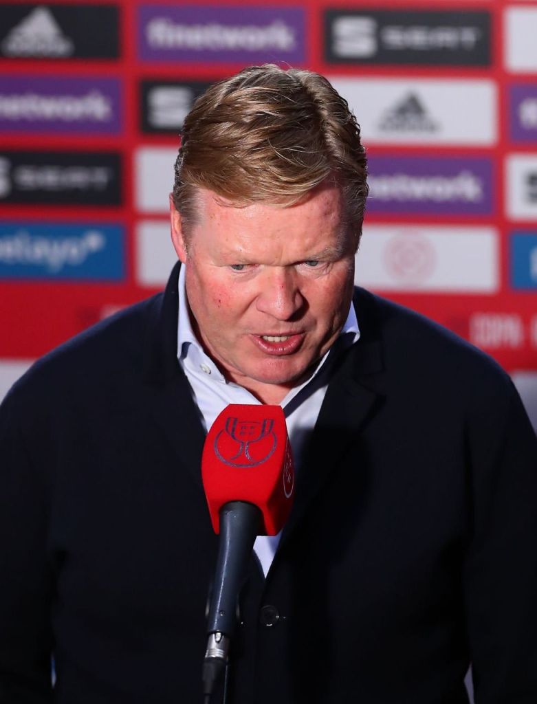 كومان: » نيمار ليس في برشلونة الان. نعمل مع اللاعبين حاليًا واثبتنا اننا قادرون على القتال. لا تعرف ابدًا اذا كنت ستفوز ومعك الأفضل. الإحتمالات كثيرة والماضي لا يهم »قُلت في وقت سابق ان اتليتكو مدريد مُرشح بالفوز بالليغا ؟كومان: اولاً، المتصدر في الليغا هو دائمًا المُرشح. ونحن ما زلنا لسنا في الصدارةتحتاجون الى مُهاجم 9؟كومان: نحن الفريق الأكثر خلقًا للفرص، وسجلنا 76 هدفًا. أعتقد أننا قدمنا أداء جيدًا هجوميًا.- بيدري؟كومان: مايهمني هو الفريق. إذا كان هناك لاعب ليس جاهزًا بدنيًا للعب، فقد حان وقت تغييره. لكنني لا أفضل تغيير التشكيلة إذا كان الفريق يلعب بشكل جيد. من الأفضل عدم فعل ذلك، رغم أن هذا يصعب الأمور على البدلاء.هل البارسا قادر على شراء لاعبين هامين الصيف القادم، هل تحدثت مع لابورتاكومان: بالنسبة لي كمدرب دائمًا احاول مساعدة الفريق. الأمر يعتمد على الوضع الإقتصادي بكل تأكيد. تحدثنا في الماضي وسوف نواصل التحدث. في نهاية الأمر الرئيس سوف يُقرر. انا اعمل مع بلانيس واليماني وسوف نرى ما يحدثالعروض تنهال على ميسي ؟كومان: لست مهتم، ولا اعرف ان كان الأمر صحيح. بالنسبة لي: ميسي يجب ان يبقى هنا لكن في نهاية الأمر ميسي سوف يُقرر. لست قلق من مستقبله لكنني قلق على مباراة الغدكومان: « الأمور لم تتغير كثيرًا منذ أن بدأت التدريب حتى يومنا هذا. الطريقة التي نتدرب بها، الاستعدادات… نحن نتبع نفس الأساليب. أن تكون لاعبًا في برشلونة يعني الفوز. لدينا قادة، أشخاص ذوو خبرة وهم مدينون بنقل هذه التقاليد إلى الشباب ».تصريح سيموني حول العقلية ؟كومان: لا اعلم، لا استطيع اعطاء وجهة نظر حول عقلية الفرق الأخرى. ذهنيًا نحن اقوياء وعدنا من مباريات قوية، انظر ما فعلناه في الكوبا. اتفق حول ما قاله سيمونيبعض اللاعبين على بعد بطاقة من الإيقاف، هل يُقلقك ؟كومان: لا، لا يُقلقني. انه جزء من كرة القدماراحة بيدري ؟كومان: اجبت عدة اسئلة حول ذلك، الشيء المهم لي هو الفريق. اذا كان اللاعب ليس جاهز فقد يتم اراحته. انا عادةً لا اؤيد الراحة اذا كان الفريق يعمل جيد جدًاغوارديولا قال بالأمس، اذا نيمار بقي في برشلونة لكان النادي حقق 3 ابطال. هل توافقه ؟كومان:بالتأكيد امر هام دائمًا ان تحظى بأفضل اللاعبين في النادي. لدينا لاعبين جيدون جدًا ونثبت قدرتنا على القتال. لقد فُزنا بالكأس بالفعلكومان: اللاعبين يعرفوا جيدًا كلاعب للبارسا عليك الفوز دائمًا . .كومان: اذا كان الفريق بخير فنحن قادرين على فعل كل شيء . .عودتكم للمُنافسة افضل عودة في تاريخ الليغا ؟كومان:اخر 17 مباراة نجحنا في تحقيق 15 فوز ويُمكنك القول ان هذا امر مُذهل وكان يجب فعل ذلك. ايضًا احتجنا لبعض الفرق من فقدانهم بعض النقاط. الفريق تحسن ولديه ثقة كبيرة وايضًا الحسم امام المرمى تحسنغريزمان يبدو لاعب مُختلف الان هل تغير وجهة نظرك حوله؟ كومان:منذ اليوم اليوم الأول، كان لاعب هام بالنسبة لي. كانت هنالك عدة انتقادات يتعرضها المهاجمين بشأن النجاعة الهجومية. غريزمان لاعب مُجتهد وعانى من سوء توفيق في وقت سابق لكنه عاد وأظهر ذلك امام فياريال.كومان: لا اعتقد ان اللاعبين يعتقدوا ان الدوري حُسم. لن تكون مُباريات متبقية سهلةكومان: ارى فريقي في غاية التركيز.عودة الجماهير ؟كومان: اولاً, اذا عادوا الجماهير الى الملاعب هذا مهم للجميع ودفعة معنوية للاعبين . .في اخر الشهور في هولندا حضر 8 الاف مشجع تقريبًا للملاعب. عودة الجماهير مهم، الأمر اشبه بالأمر عاطفي والجميع اشتاق لهموقت طويل منذ الصدارة. اهمية ذلك بالنسبة لك؟كومان: نعم انه امر مهم لكنها ستكون مباراة هامة ايضًا مثل اي مُباراة اخرى. نريد ال3 نقاط. غدًا لن تكون مباراة اهم من قبلها، جميع ما تبقى هو مهم جدًافرصة الصدارة ؟كومان: نعم انها مباراة مهمة لنا، نحن في وضعية بأنه لدينا الفرصة لكي نكون متصدرين وهذه جائزة لنا لكن علينا الفوز اولاً!